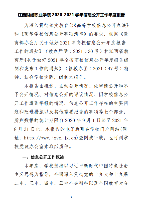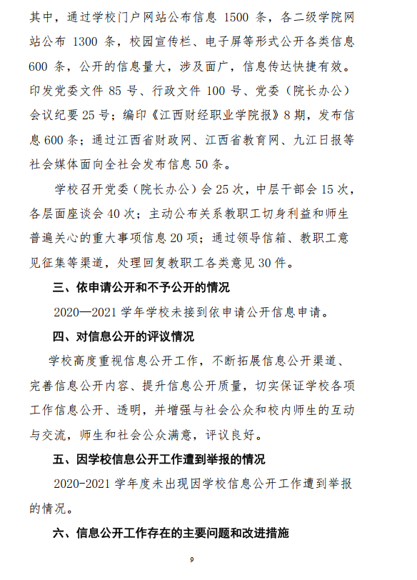 江西財經職業學院 2020-2021學年信息公開工作年度報告