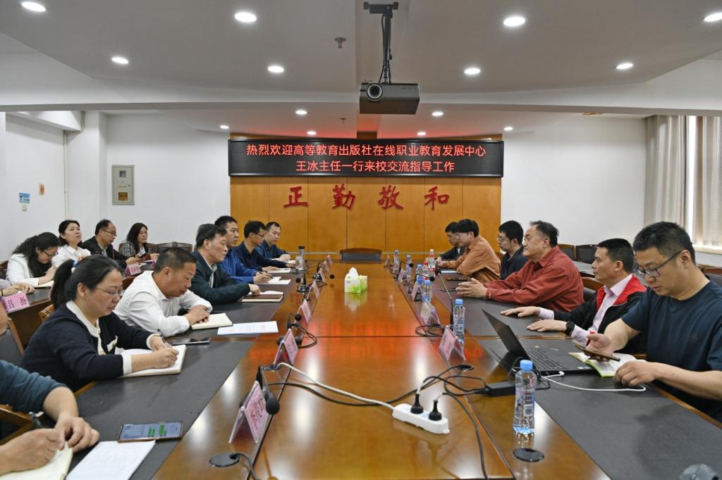 5月9日上午,高等教育出版社在線職業(yè)教育發(fā)展中心主任王冰、高等教育出版社江西省職業(yè)教育教學(xué)服務(wù)中心主任敖林生、高等教育出版社高級編輯李學(xué)鋒、高等教育出版社在線職業(yè)教育發(fā)展中心華東區(qū)主任楊波、江西立創(chuàng)高教文化有限公司總經(jīng)理敖澤宇一行到我校調(diào)研交流。校黨委書記劉彪文在綜合樓1202會議室熱情接待了王冰主任一行,校黨委副書記、常務(wù)副校長何先應(yīng),教務(wù)處、各二級學(xué)院負責(zé)同志參加交流座談會。