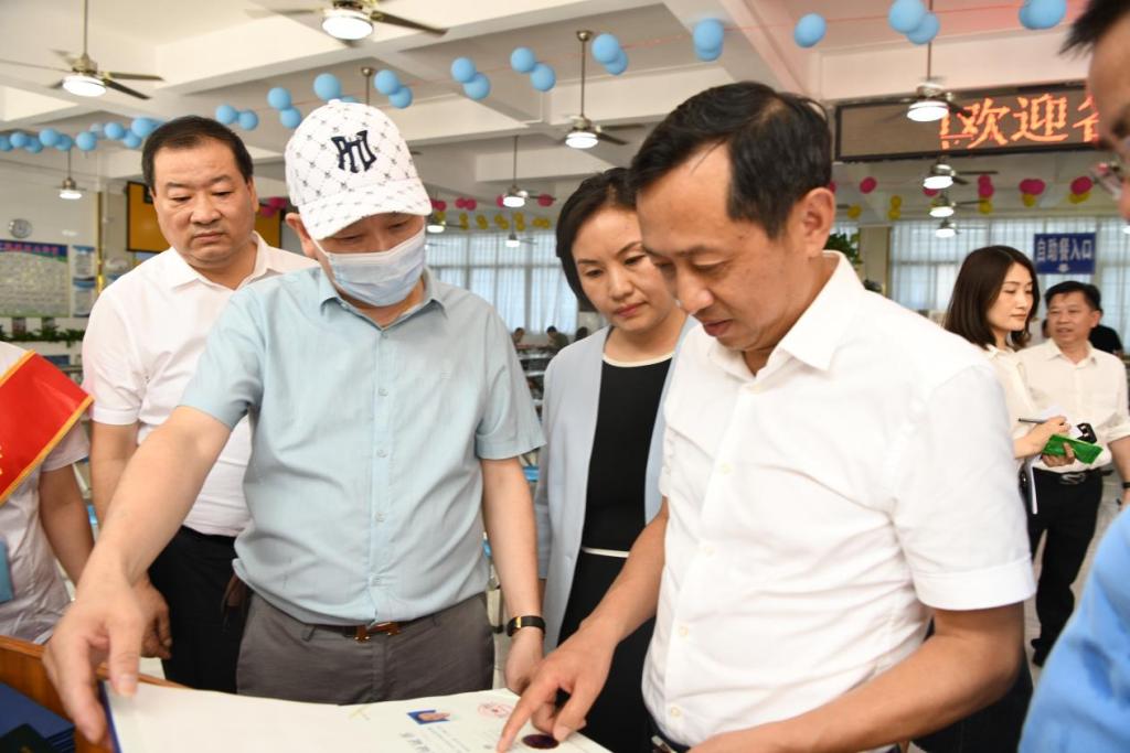 孫金淼一行來到南區食堂,現場察看了食堂衛生環境、餐品加工及餐飲具消毒設施配備等情況,認真聽取了相關負責人對于學校食品安全工作的匯報,并詢問了《企業落實食品安全主體責任監督管理規定》有關學校食品安全總監、食堂食品安全員的配置情況。