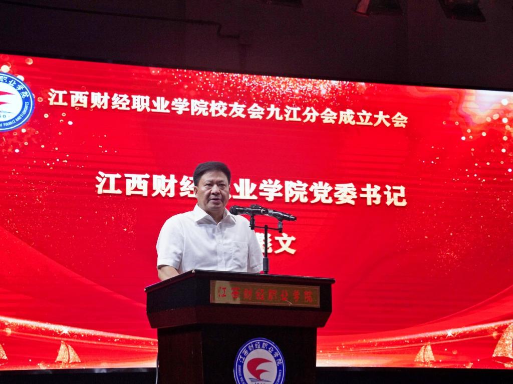 劉彪文代表學(xué)校致辭。他表示,校友是母校育人成果的最好標(biāo)尺,也是母校最靚麗的名片和最重要的財富。他希望校友會加強(qiáng)校友之間、校友和母校之間的密切聯(lián)系,用心、用情、用力做好校友工作,為校友與母校之間開展交流和合作提供有力支撐和組織保障;希望各位校友在“正勤敬和”校訓(xùn)精神的引領(lǐng)下,秉承“真誠平等、團(tuán)結(jié)互助、奮斗共享”的校友會宗旨,把九江校友分會建設(shè)成為有效的、高質(zhì)量的,有感情、有溫度、有能力的組織,助推學(xué)校發(fā)展新局面,攜手書寫學(xué)校發(fā)展更加輝煌更加美好的新篇章。