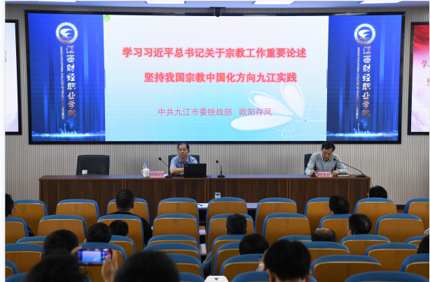 為深入學習領會習近平總書記關于維護意識形態(tài)安全和做好宗教工作的重要論述,宣傳貫徹黨的宗教政策,進一步增強我校干部教師開展宗教工作能力,5月26日下午,特邀請中共九江市委統(tǒng)戰(zhàn)部副部長、二級巡視員歐陽存鳳來校作專題講座,校黨委副書記、常務副校長何先應主持此次講座,各二級學院黨總支書記、副書記,相關部門負責人,全體班主任,輔導員,統(tǒng)戰(zhàn)工作人員等到場聆聽講座。