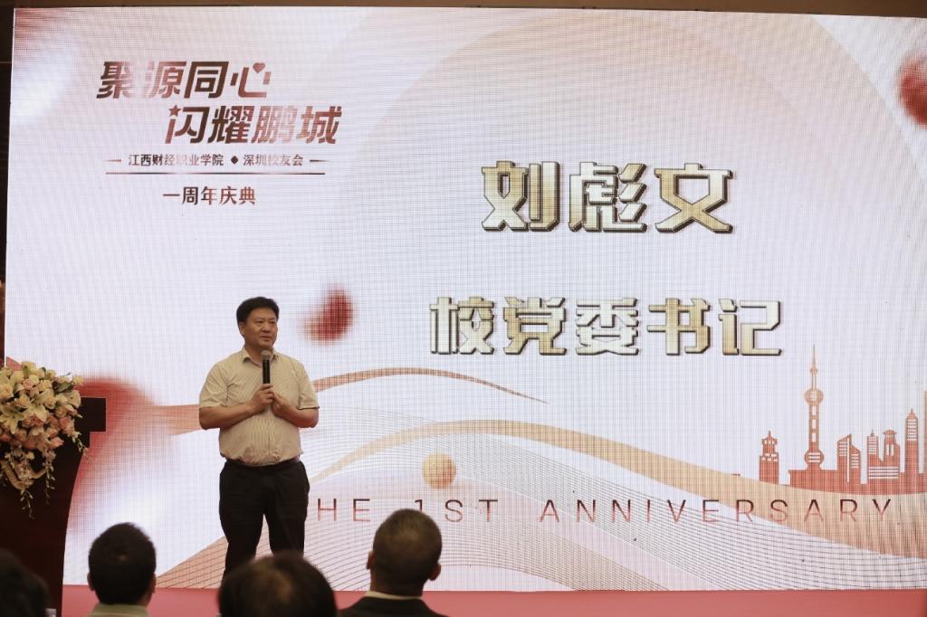 劉彪文強調(diào):“今天深圳校友會的慶典主題有四個字‘聚源同心’,重心在同心,如果沒有同心,我們不可能走到一起。所以我希望所有校友千萬不要忘記身上的使命,不要忘記習(xí)近平總書記說的初心!我們從哪里來?我們要到哪里去?我們從學(xué)校走來,我們要奔向社會,用習(xí)近平總書記的話說,我們要成為中國特色社會主義事業(yè)合格的建設(shè)者、接班人。江西財經(jīng)職業(yè)學(xué)院的發(fā)展是一代一代人努力的結(jié)果。她的成就,就是一代又一代杰出的校友。校友的杰出不是用財富去詮釋,也不是用權(quán)力去說明,校友的杰出是讓社會知道,江西財經(jīng)職業(yè)學(xué)院的畢業(yè)生是社會必不可少的基石,是祖國建設(shè)發(fā)展的一道靚麗的風(fēng)景。你們從學(xué)校走出來的時候,可能還帶著幼稚、帶著童趣,但經(jīng)過社會的磨練,有了一份更多的堅定、有了一份更多的成熟。這份堅定、成熟就來自于大家的努力,這既是對自己個人的完善,更是對社會的貢獻(xiàn)”。