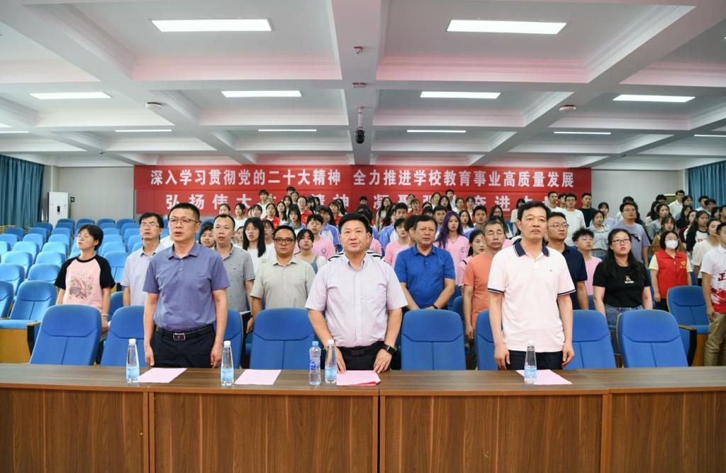 為深入推進學習貫徹習近平新時代中國特色社會主義思想主題教育,引導和幫助廣大青年學生在社會課堂中“受教育、長才干、作貢獻”,6月29日下午,學校在綜合樓七樓報告廳舉行了“學習黨的二十大 永遠跟黨走 奮進新征程”2023年暑期“三下鄉”社會實踐活動出征儀式。校黨委書記劉彪文,黨委副書記、常務副校長何先應,黨委委員劉鋒出席,各二級學院黨總支負責同志、各實踐隊指導老師及團隊成員共200余人參加。儀式由校團委副書記廖國臣主持。