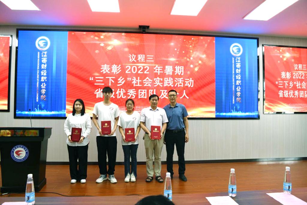 儀式上播放了2022年暑期“三下鄉”社會實踐活動視頻。劉鋒為2022年暑期“三下鄉”社會實踐活動省級優秀團隊及個人頒獎。