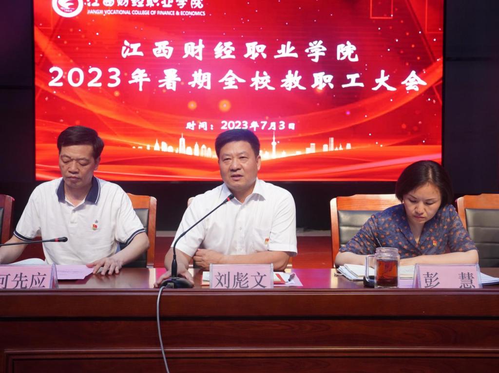 7月3日上午,我校在英才交流中心召開全體教職工大會。黨委書記劉彪文,黨委副書記、校長彭慧及全體在家校領(lǐng)導(dǎo)班子成員出席,全體教職員工參加大會,南昌校區(qū)視頻參會。會議由黨委副書記、常務(wù)副校長何先應(yīng)主持。