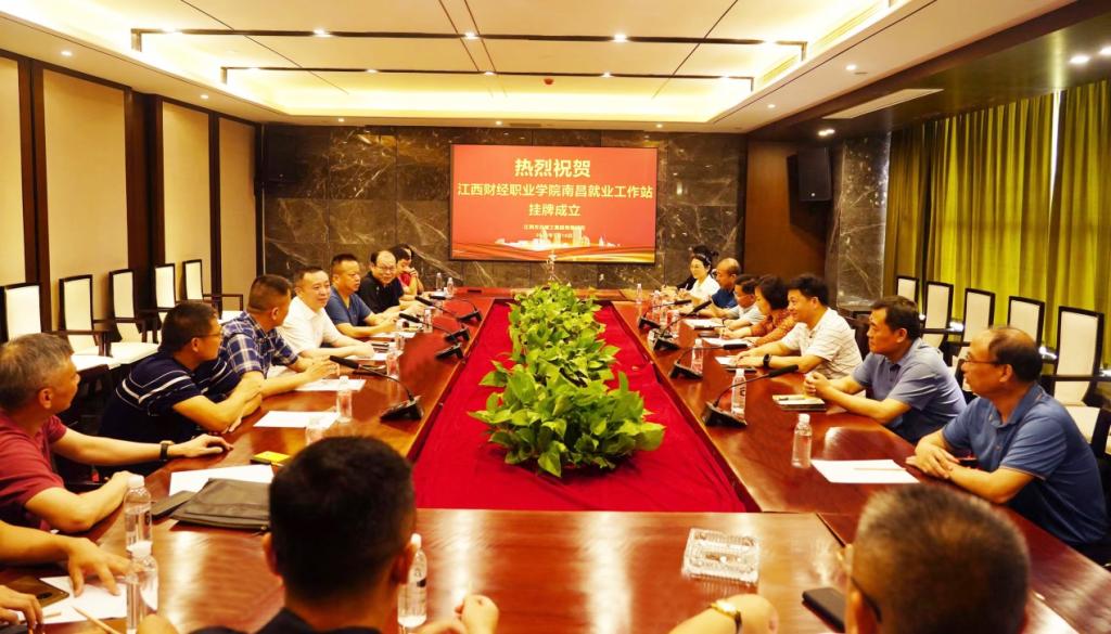 最后,劉彪文、彭慧與南昌校友一起為江西財經職業學院南昌就業工作站授牌。