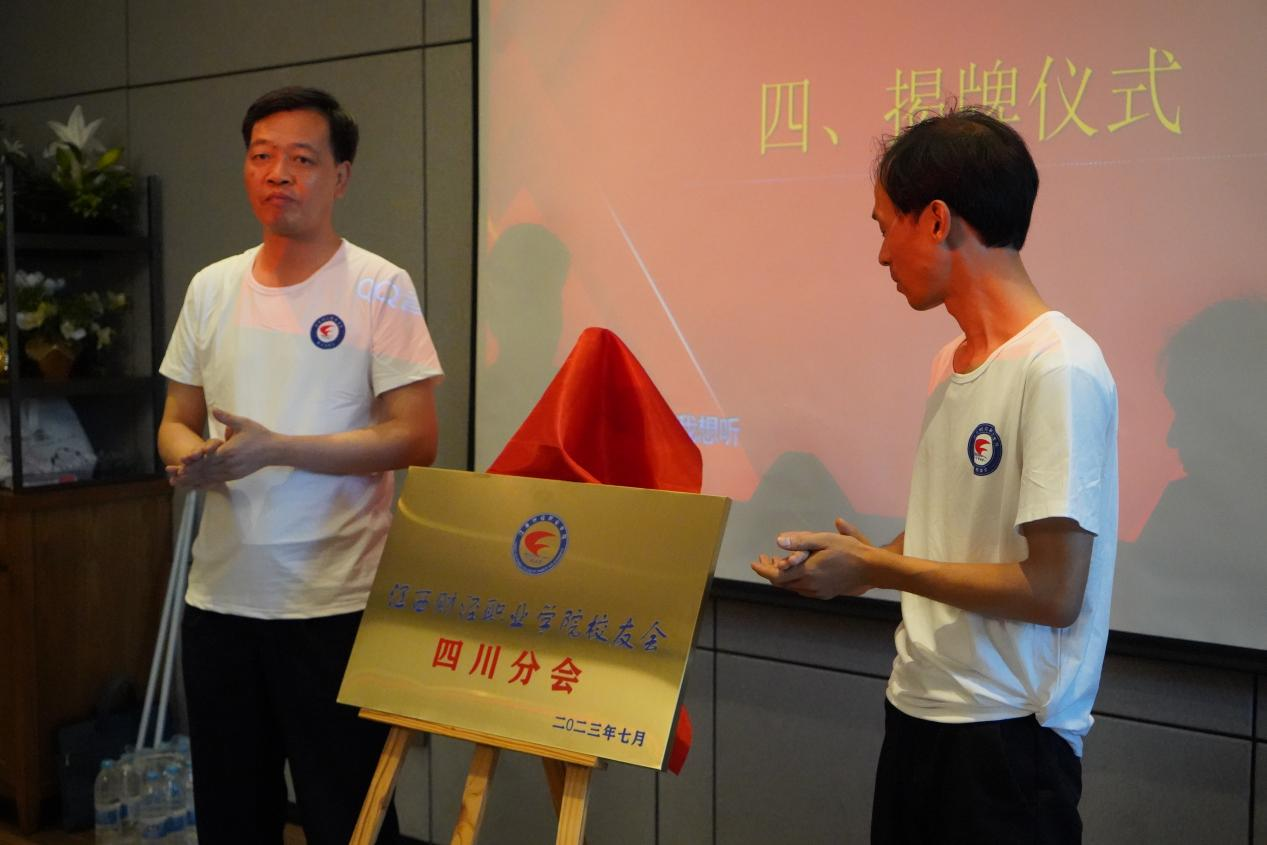 何先應、校友胡兵共同為四川校友分會揭牌。江西財經職業學院校友會執行會長魏發平,廣東、深圳、金華、上海、九江、都昌校友分會,杭州、南昌、北京等各地校友分會籌備組通過賀電、賀信、祝福視頻等方式對四川校友分會的成立表示祝賀。