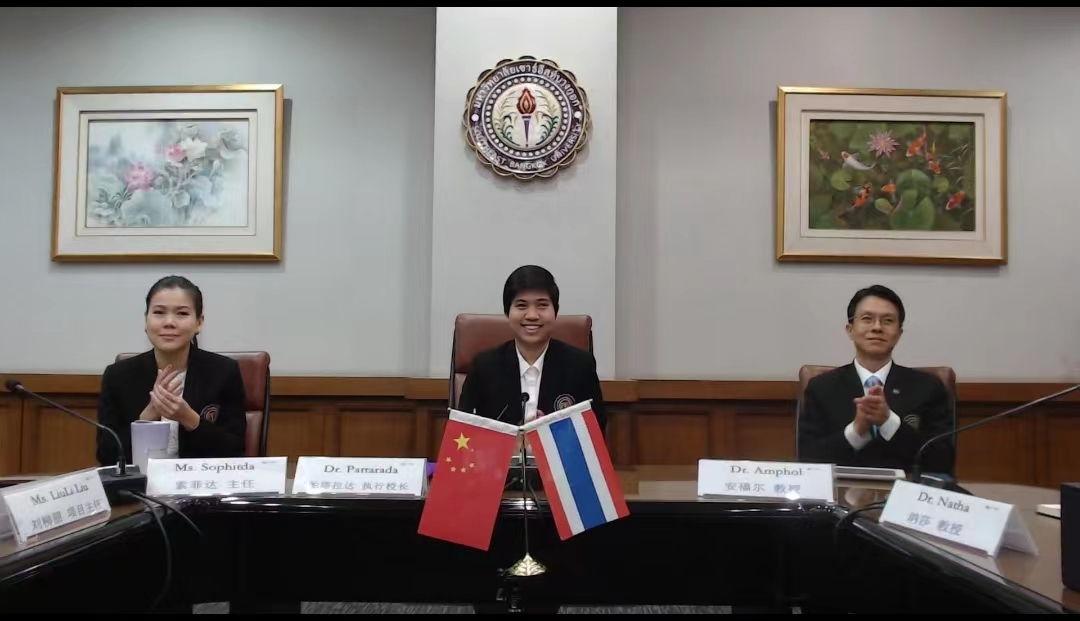 為進(jìn)一步加強我校國際交流合作,提升國際合作辦學(xué)質(zhì)量與水平,9月6日上午,我校與泰國東南曼谷大學(xué)共同舉行了“中文+職業(yè)技能”泰國培訓(xùn)項目簽約啟動儀式,會議以視頻連線形式舉行。我校校長彭慧,泰國東南曼谷大學(xué)執(zhí)行校長帕塔拉達(dá)出席儀式。