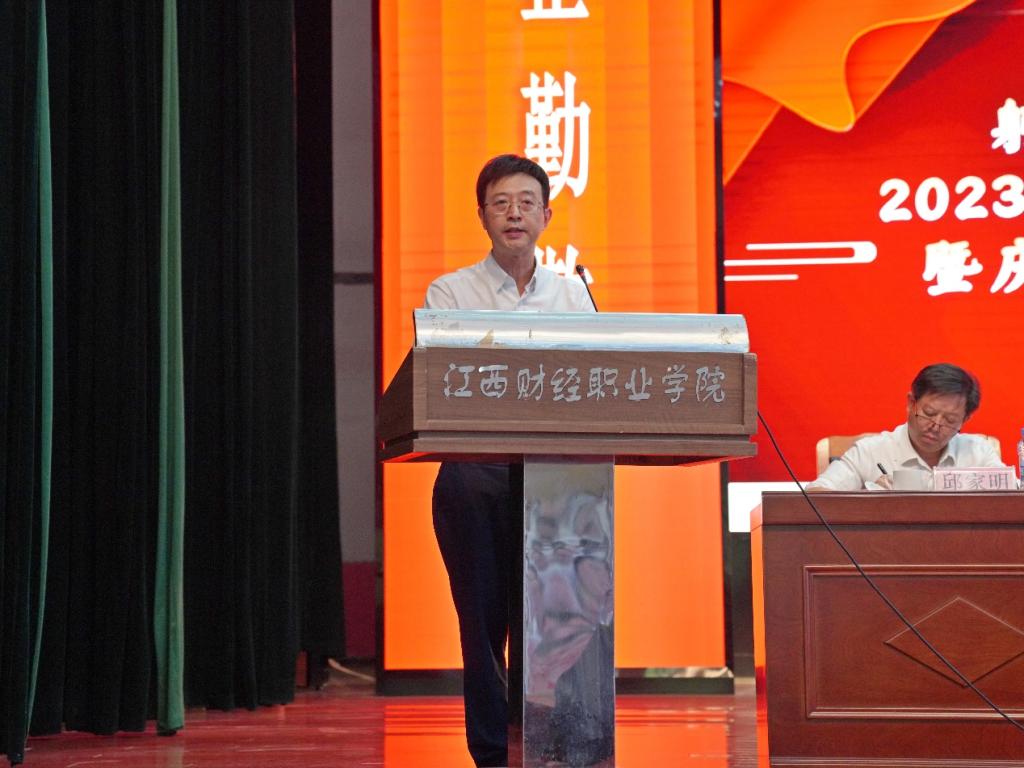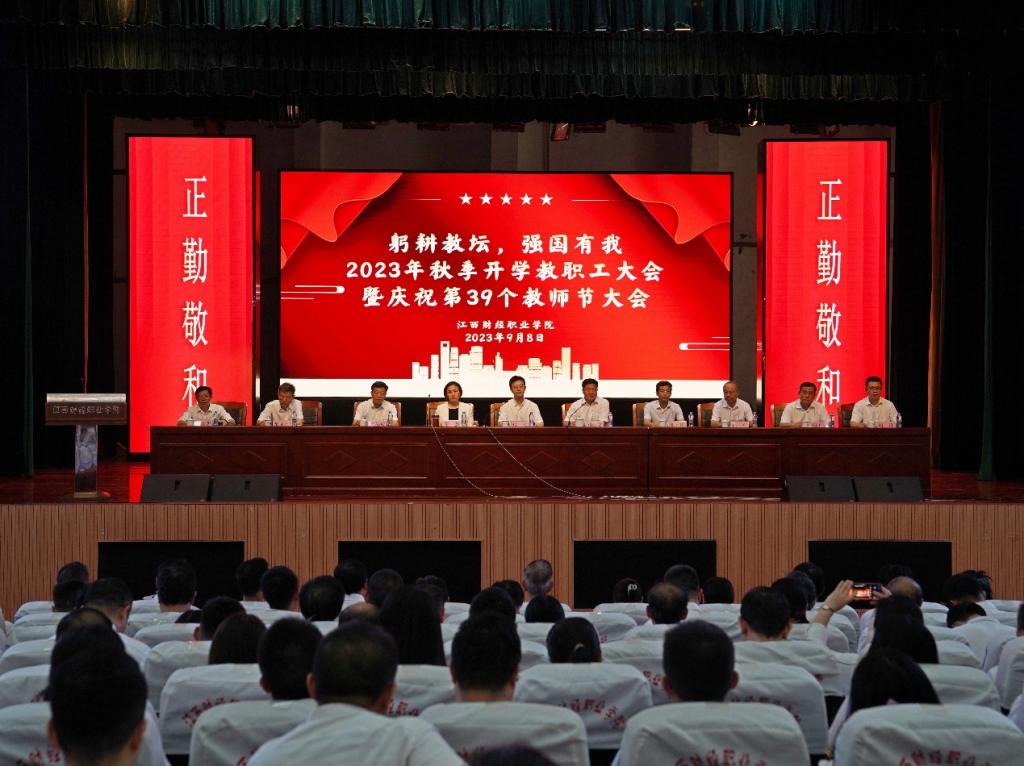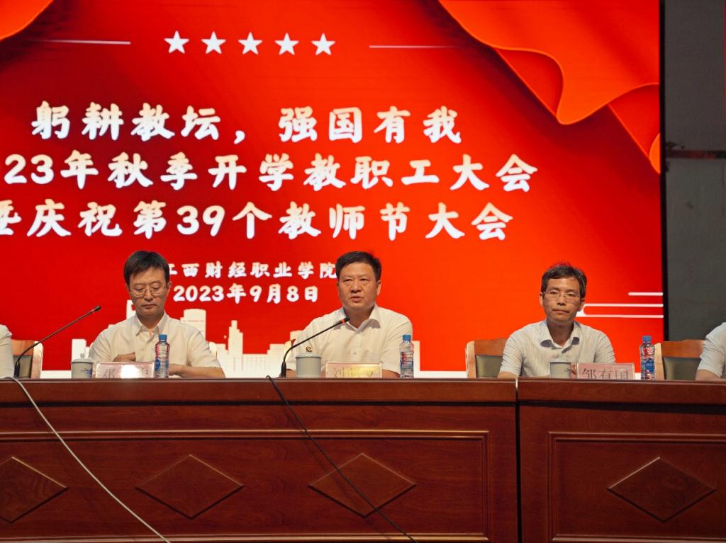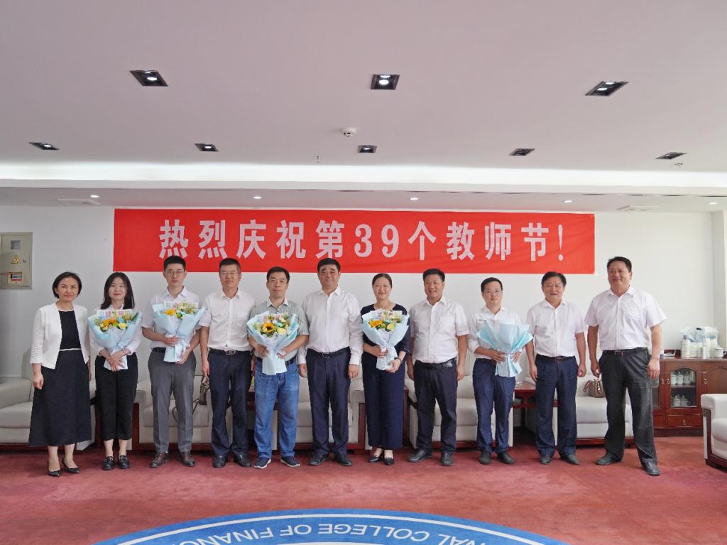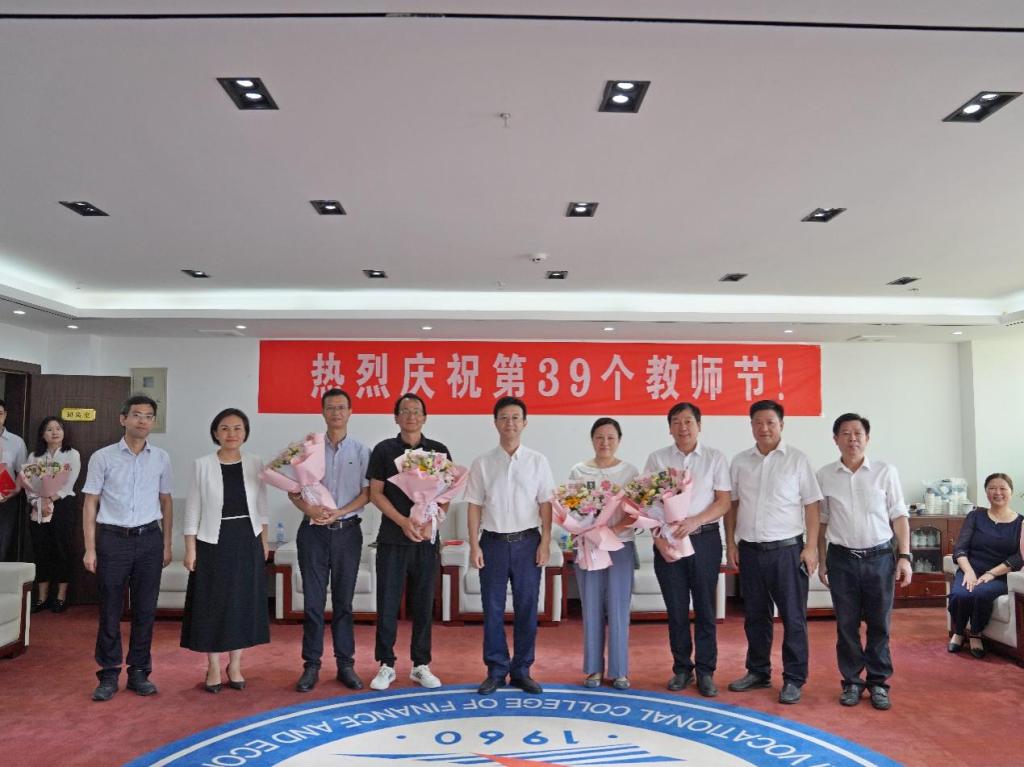 9月8日,九江市政協主席占勇,省財政廳黨組成員、副廳長鄧忠蒞臨我校看望并慰問辛勤耕耘在教學一線的教師,與全體教職工共同慶祝第39個教師節。