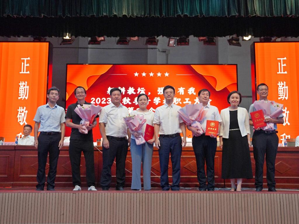黨委副書記、常務副校長何先應宣讀了《關于表彰2023年度長期從教教師的決定》。從教30周年教師代表柯新華、青年教師代表付靚楠作了發言。會上還向全體教職工發出“踐行立德樹人使命 爭做‘四有’好老師”倡議。