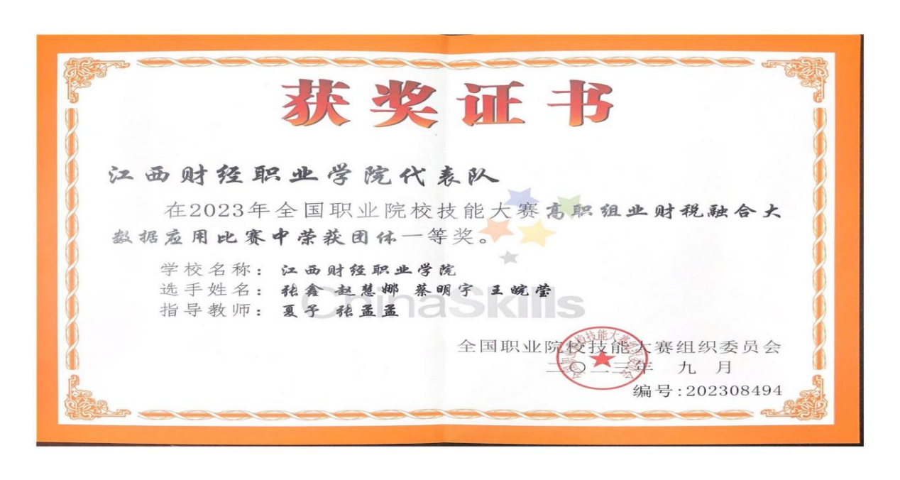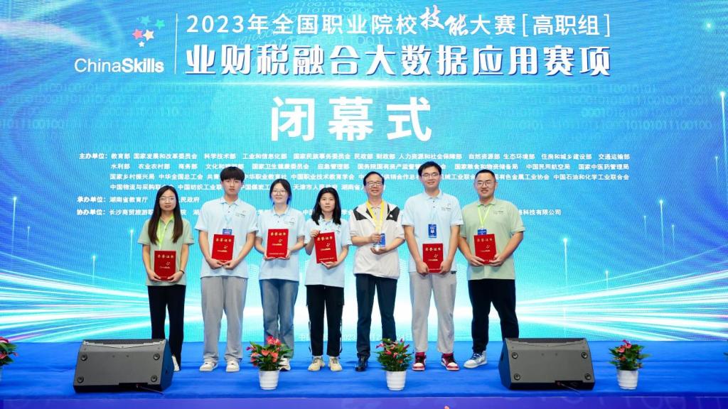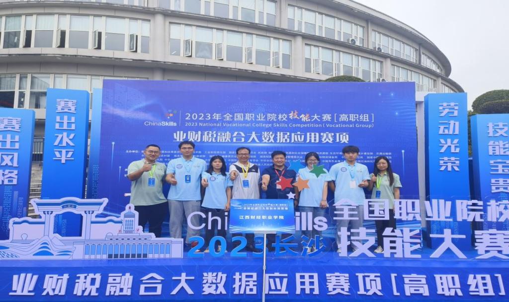9月22日至24日,2023年全國職業院校技能大賽(高職組)“業財稅融合大數據應用”賽項在長沙商貿旅游職業技術學院進行,今年是該賽項的首屆比賽,共有來自全國各地高職院校的95支代表隊、380名學生參賽。經過一天半的角逐,由我校財稅金融學院夏予、張孟孟老師指導的張鑫、趙慧娜、蔡明宇、王皖瑩四位同學組成的江西省代表隊斬獲團體一等獎。