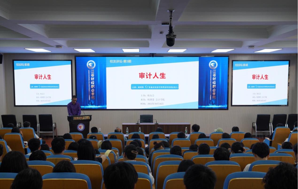 為進(jìn)一步加強(qiáng)校友與母校的聯(lián)系,凝聚廣大校友力量。引導(dǎo)我校學(xué)子樹立正確的就業(yè)觀與成才觀,開拓對會計、審計等專業(yè)的認(rèn)知視野,激勵同學(xué)們樹立適合自身的人生目標(biāo)。2023年10月16日下午,我校邀請91級企財專業(yè)校友謝園保為全體學(xué)生開展“審計人生”主題講座,會計學(xué)院近300名學(xué)生聆聽了講座。