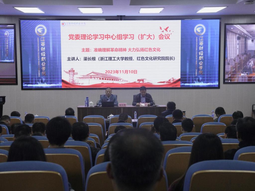 11月10日上午,學(xué)校在七樓報告廳召開黨委中心組學(xué)習(xí)(擴(kuò)大)會,特別邀請浙江理工大學(xué)紅色文化研究院院長渠長根教授作題為《準(zhǔn)確理解革命精神 大力弘揚(yáng)紅色文化》的輔導(dǎo)報告。校黨委書記劉彪文主持會議,校領(lǐng)導(dǎo)班子成員出席,中層干部、全體輔導(dǎo)員參加學(xué)習(xí),南昌校區(qū)同步視頻參會。