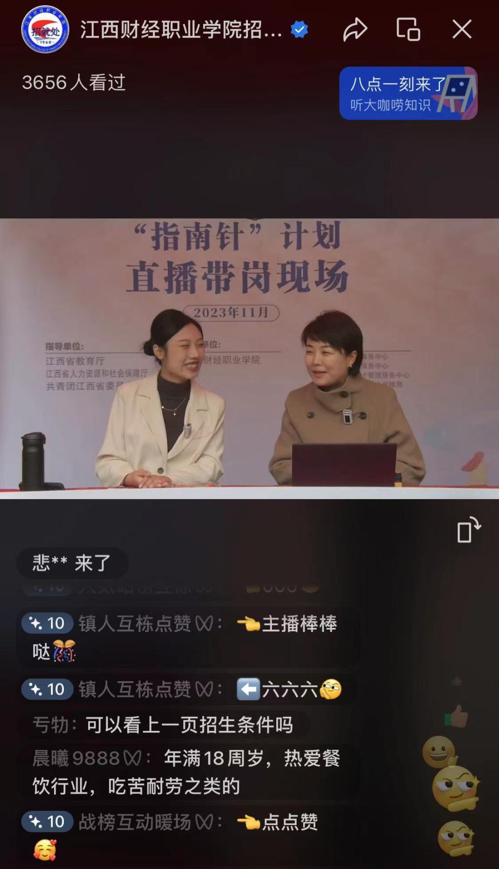 招聘會(huì)現(xiàn)場(chǎng)專(zhuān)門(mén)搭建了直播間,同步開(kāi)展“直播帶崗”活動(dòng),為畢業(yè)生精選名企優(yōu)質(zhì)崗位精準(zhǔn)帶崗,將“直播帶崗”與校園招聘會(huì)有機(jī)結(jié)合。直播間里,學(xué)校老師帶著學(xué)生關(guān)注度高的問(wèn)題與企業(yè)HR交流,幫助畢業(yè)生了解招聘崗位、薪資福利、企業(yè)文化等企業(yè)信息,實(shí)時(shí)為畢業(yè)生答疑解惑。