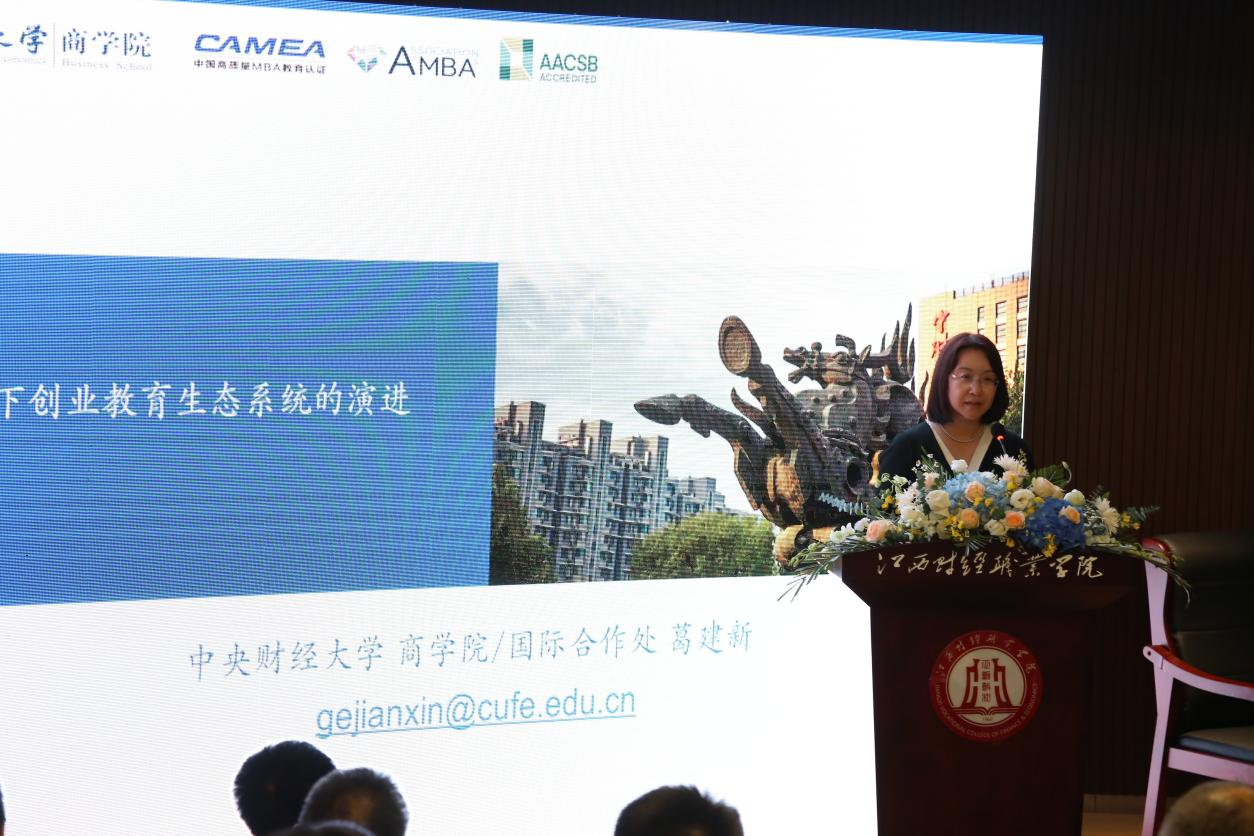江西財(cái)經(jīng)大學(xué)創(chuàng)業(yè)教育學(xué)院院長(zhǎng)梅小安在“井岡精神鑄魂 雙創(chuàng)教育賦能”主旨演講中以江西財(cái)經(jīng)大學(xué)國(guó)家級(jí)雙創(chuàng)基地建設(shè)經(jīng)驗(yàn)為主要內(nèi)容,介紹了學(xué)校在創(chuàng)新創(chuàng)業(yè)人才培養(yǎng)過(guò)程中以井岡山精神鑄魂,在人才培養(yǎng)、教育模式、課程建設(shè)、教材編寫、實(shí)踐教學(xué)、教育服務(wù)、文化環(huán)境等方面取得的階段性成果。