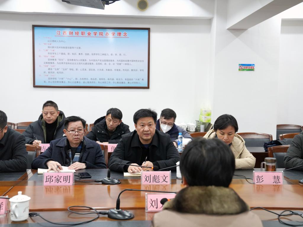 在潯陽校區綜合樓1201會議室,劉力群聽取了學校安全工作匯報。劉彪文介紹了寒假及春節期間學校安全工作部署情況,就校舍、食堂、門店等場所的排查整治,師生安全教育及采取的有關具體措施作了詳細匯報。