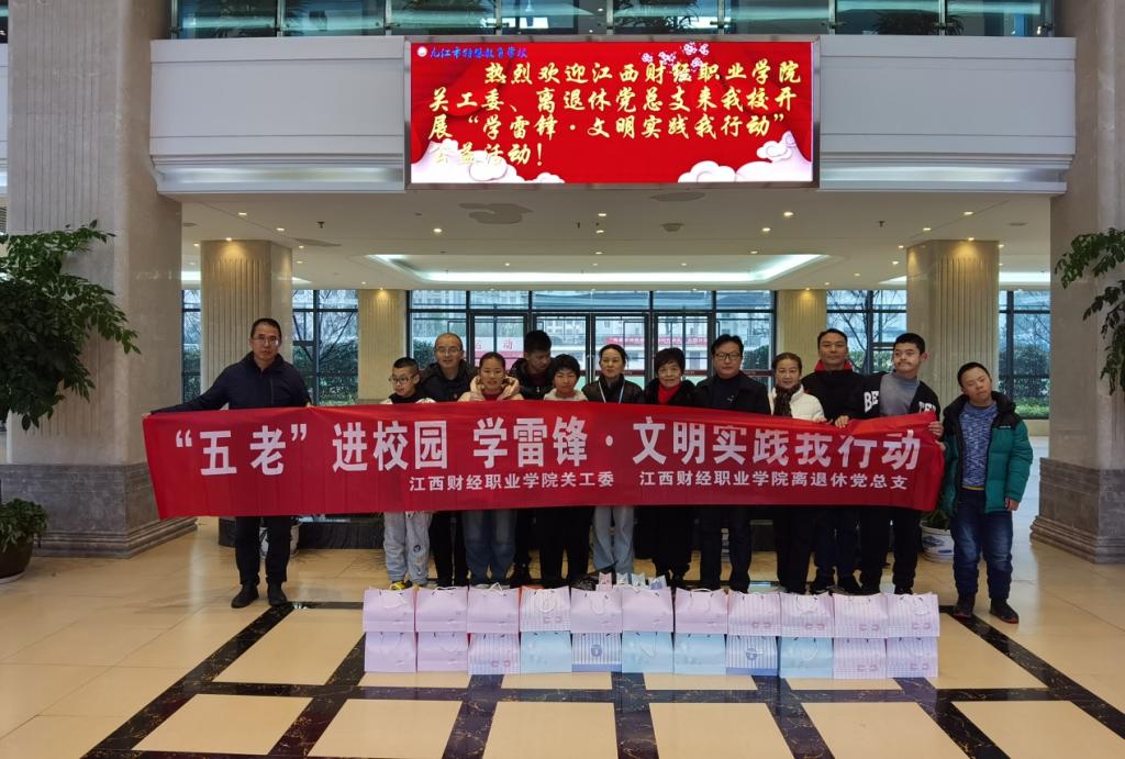 為貫徹落實習近平總書記關于深入開展學雷鋒活動的重要指示精神,深刻把握雷鋒精神的時代內涵,更好地發揮我校“五老”專家和黨員干部的模范帶頭作用,2024年3月5日下午,校關工委、離退休黨總支組織“五老”專家、黨員干部赴九江市特殊教育學校開展了“‘五老’進校園—學雷鋒文明實踐我行動”志愿服務活動。校關工委常務副主任丁正員、離退休黨總支書記楊郁等一行5人參加活動。