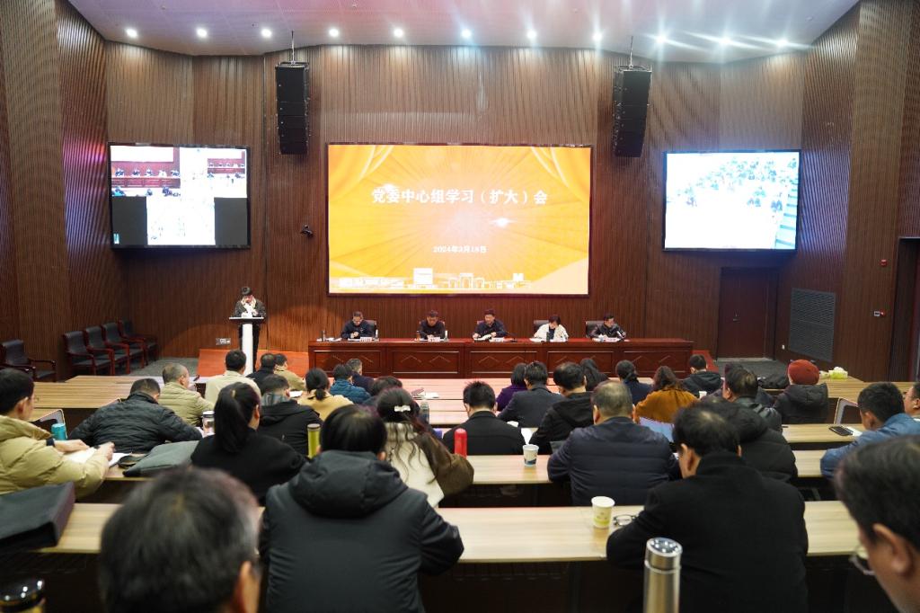 3月18日,學校在八里湖校區行政樓一樓2號報告廳召開黨委中心組學習(擴大)會,學習習近平總書記在全國兩會期間的重要講話精神和全國兩會精神并開展學習研討。黨委書記劉彪文主持會議,校領導班子成員、各部門負責人參加會議,潯陽校區、南昌校區視頻參會。