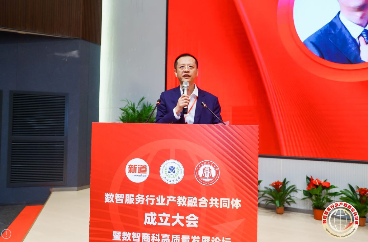 浙江工商大學工商管理學院(MBA學院)黨委副書記袁宏亮在致辭中表示,近年來,浙江工商大學在積極落實產教融合戰略,主動加強產教融合平臺建設,構建多方協同育人機制,提高人才培養質量。希望在數智服務行業產教融合共同體內,各高校和企業之間能進一步加強融合與合作,推動新技術與傳統學科融合發展,促進人才鏈、創新鏈與產業鏈的有機深度融合,提高高校人才供給與企業人才需求的匹配度,發揮好人才的支撐作用,推動產業和社會經濟發展。浙江工商大學將充分發揮自身學科特色和優勢,攜手共同體內成員單位,共創更高質量教育體系,共育更高水平現代服務人才,為以中國式現代化全面推進強國建設、民族復興偉業作出更大貢獻。
