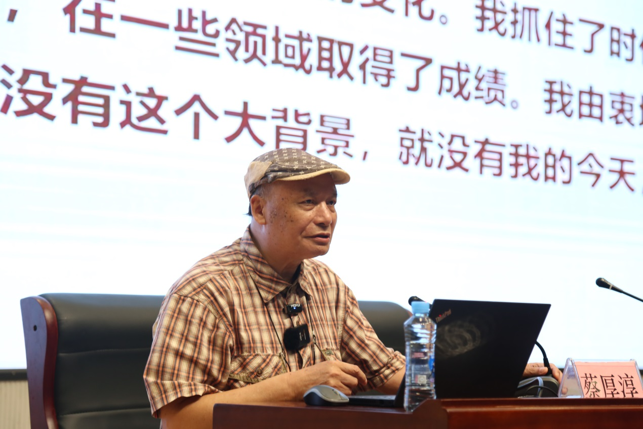 在現(xiàn)場交流會(huì)上,蔡厚淳教授以“感謝新時(shí)代 感謝新生活”為題作了專題報(bào)告,他講述了自己1977年趕上國家恢復(fù)高考的機(jī)遇,艱苦求學(xué),從而改變自己命運(yùn)的故事,分享了他在我校從教28年和退休后在社會(huì)上從事中華優(yōu)秀傳統(tǒng)文化傳播17年的人生體悟,并囑托同學(xué)們要堅(jiān)定理想信念,厚植家國情懷,以艱苦奮斗的精神,錘煉自身的意志品格,自強(qiáng)不息,奮斗不止,在建設(shè)教育強(qiáng)國的實(shí)踐中奉獻(xiàn)自己的青春和力量。