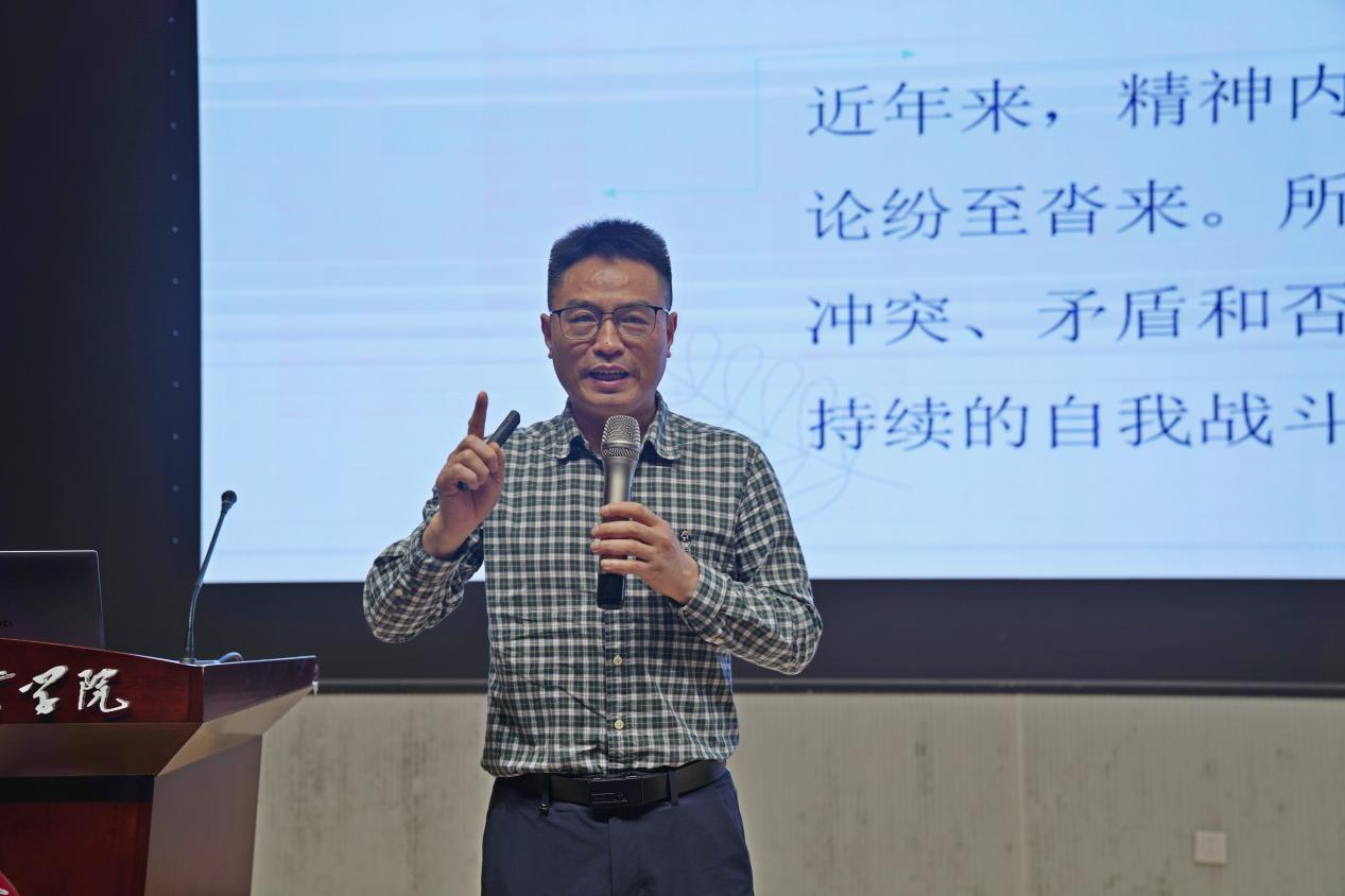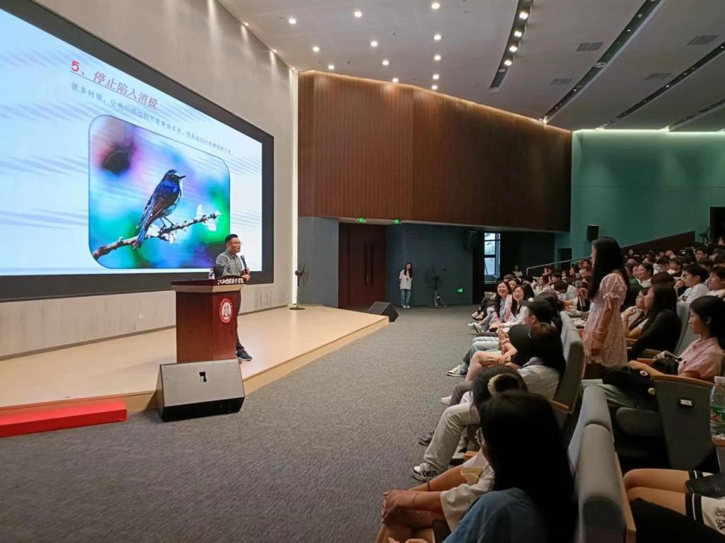 在快節(jié)奏的現(xiàn)代生活中,我們時(shí)常感到心力交瘁,仿佛被無形的壓力束縛著。這種內(nèi)心的消耗,不僅影響我們的情緒狀態(tài),更可能阻礙我們追求幸福生活的步伐。在講座中,高美才教授從分析自我人格動(dòng)力類型到講解精神內(nèi)耗的內(nèi)在心理機(jī)制,運(yùn)用自體關(guān)系模型講述內(nèi)耗與賦能的關(guān)系,幫助學(xué)生調(diào)節(jié)心態(tài);他以幽默風(fēng)趣的授課風(fēng)格,用生動(dòng)有趣的小故事和生活當(dāng)中各種各樣的例子來講述怎么認(rèn)識來源于生活中的焦慮與內(nèi)耗,怎樣正確處理在生活中的困難與挑戰(zhàn),如何放下心中的焦慮,減少內(nèi)耗。