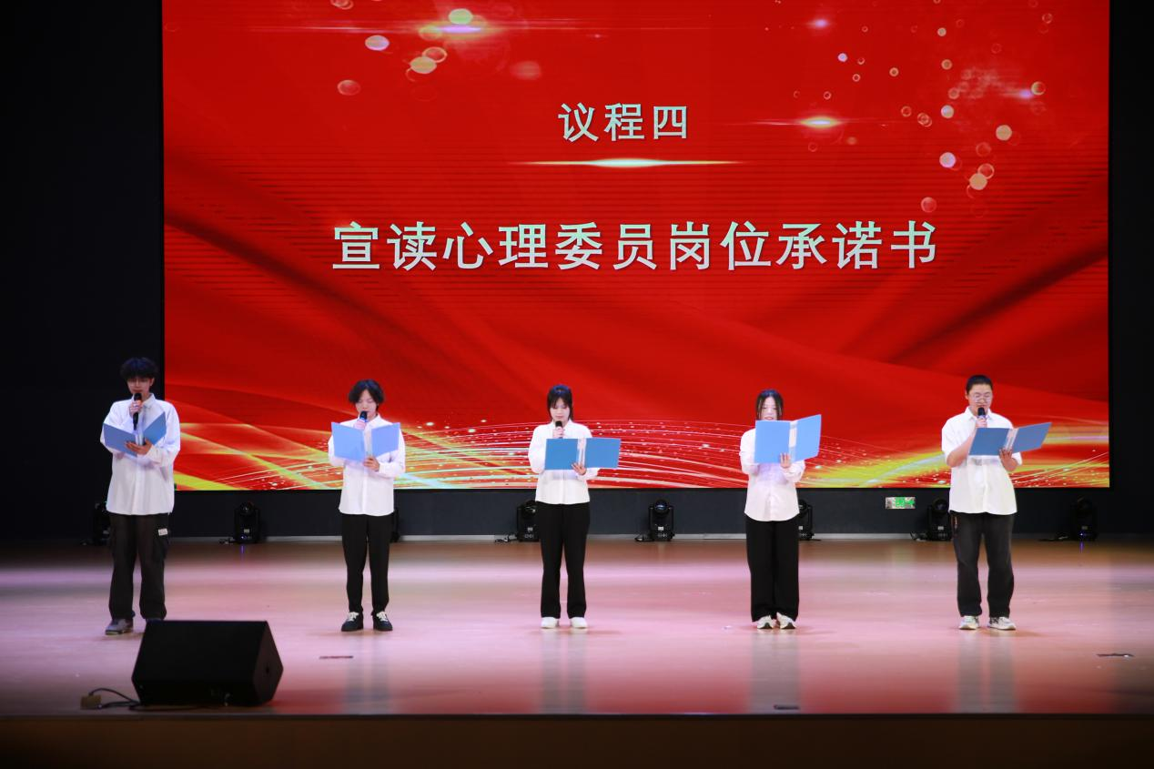 開(kāi)幕式上,心理中心負(fù)責(zé)人王美娟介紹了本屆心理健康文化月的活動(dòng)安排;各二級(jí)學(xué)院黨總支書(shū)記為班級(jí)心理委員代表頒發(fā)崗位聘書(shū),心理委員代表宣讀崗位承諾書(shū),表達(dá)了他們?yōu)橥瑢W(xué)們提供心理支持和服務(wù)的助人情懷。大學(xué)生心理協(xié)會(huì)的會(huì)員代表徐含文同學(xué)宣讀了《心理健康文化月活動(dòng)倡議書(shū)》,呼吁全校師生積極參與,共同營(yíng)造積極關(guān)注心理健康的良好氛圍。