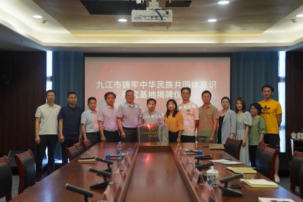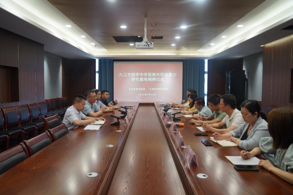 5月28日,九江市鑄牢中華民族共同體意識研究基地揭牌儀式在我校八里湖校區行政樓727會議室舉行。市民族宗教事務服務中心主任胡定文、副主任虞功智、民族宗教事務服務中心民族科副科長程清,市委統戰部一級主任科員黃曉平,我校黨委委員、副校長邱家明,黨委統戰部、黨委宣傳部、學生工作處、團委、教務處、馬克思主義學院、安全保衛處等部門負責人參加了揭牌儀式。