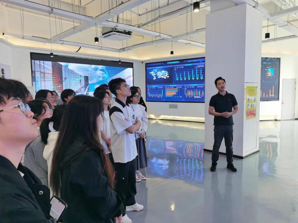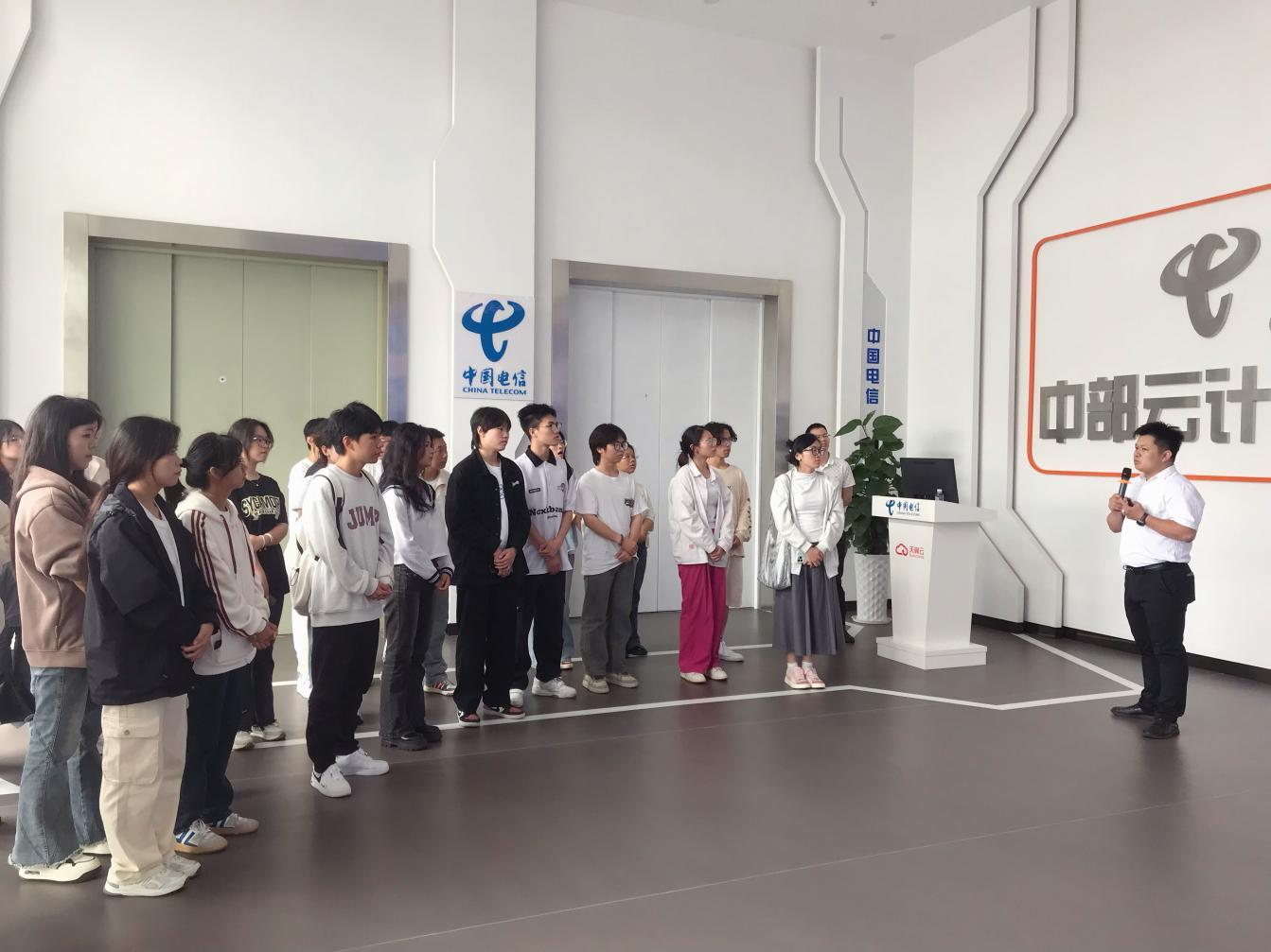 隨后,同學們前往中國電信中部云計算大數據中心,參觀了數據中心的生產車間、服務器機房以及辦公區域,全面了解了云計算、大數據等前沿技術在政務服務、交通運輸、環境治理、鄉村建設等各個領域的應用與發展,了解了企業的運營模式、管理方式、人才需求等方面的情況。