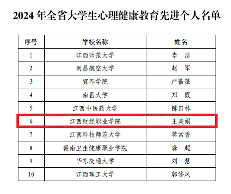 在2024 年全省“大學(xué)生心理健康教育先進個人”評選中,經(jīng)全省各學(xué)校推薦、專家評審、公示等環(huán)節(jié),10位心理健康教師獲此殊榮,我校王美娟老師榜上有名。這一榮譽的獲得,不僅是對王美娟個人在心理健康教育領(lǐng)域所作貢獻的肯定,也是對我校心理健康教育工作的極大肯定和鼓舞。