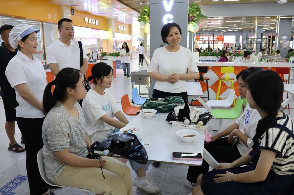 在南區(qū)食堂,彭慧一行查看了飯菜成品、價格和質(zhì)量,與就餐新生及家長交流,征詢他們對就餐的意見和建議,并叮囑學生盡快適應大學生活,對家長給予學校的信任和支持表示感謝。