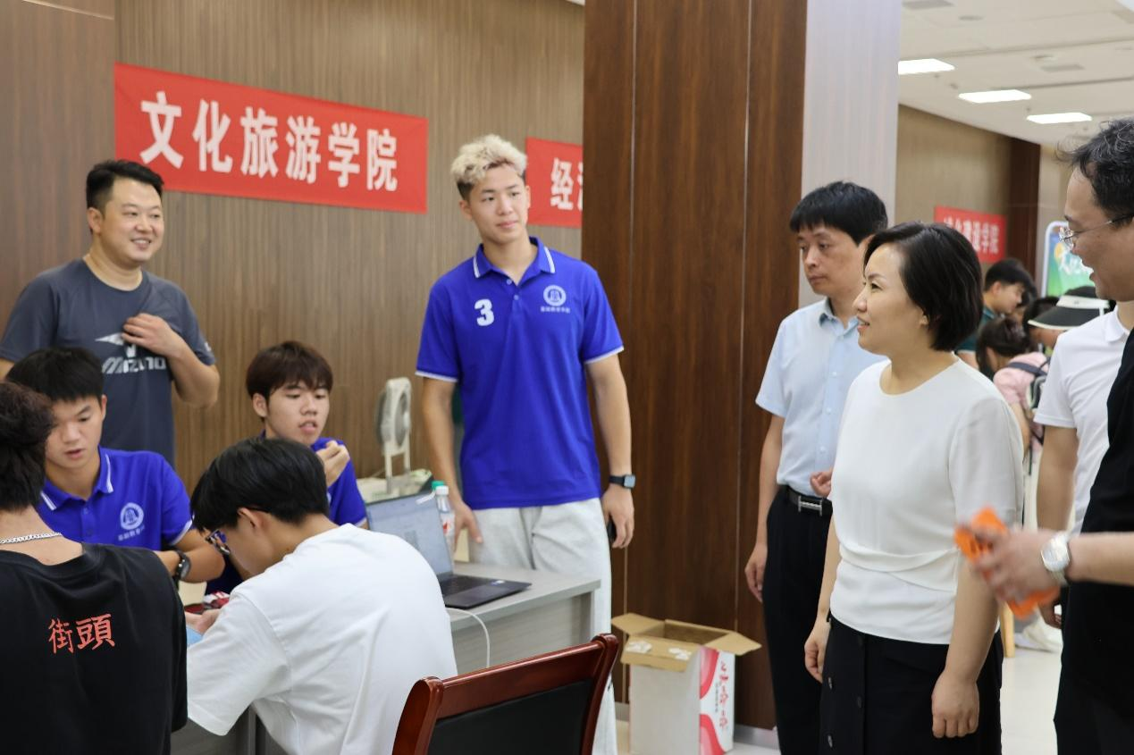 金風送爽,喜迎萌新。9月6日,是我校2024級新生集中報到第一天,來自全國各地的學子陸續(xù)到校,開啟人生新征程。校黨委副書記、校長彭慧帶隊到八里湖校區(qū)檢查指導迎新工作,親切看望報到入學的新生,慰問參與迎新工作的師生。相關職能部門負責人陪同。
