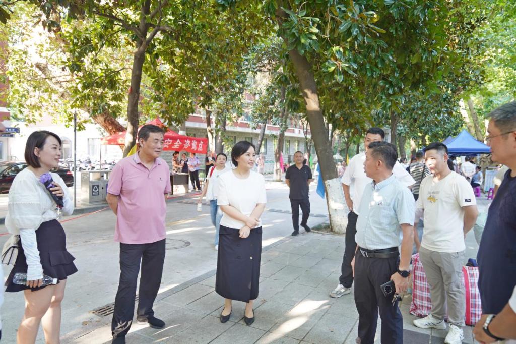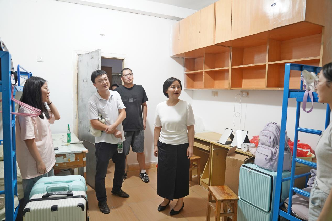 彭慧一行來到新生宿舍看望新生,與新生及學生家長親切交談,了解學生入住情況和學習生活需求,傾聽學生入學感受和學習規劃,并叮囑同學們要認真完成好入學教育,保持日常身心健康,做好學業規劃,盡快適應新的環境。彭慧表示,學校堅持圍繞師生、關照師生、服務師生,將竭力為同學們做好服務,幫助解決學習和生活中的困難。