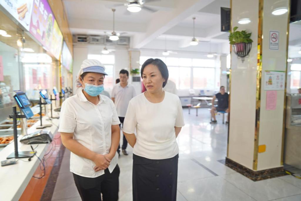 在南區食堂,彭慧一行檢查了食堂用餐環境并聽取相關負責人關于迎新期間供餐情況的匯報。彭慧強調要做好食堂管理,聚焦師生餐飲需求,把好食品安全“總開關”,不斷提升師生獲得感、幸福感。