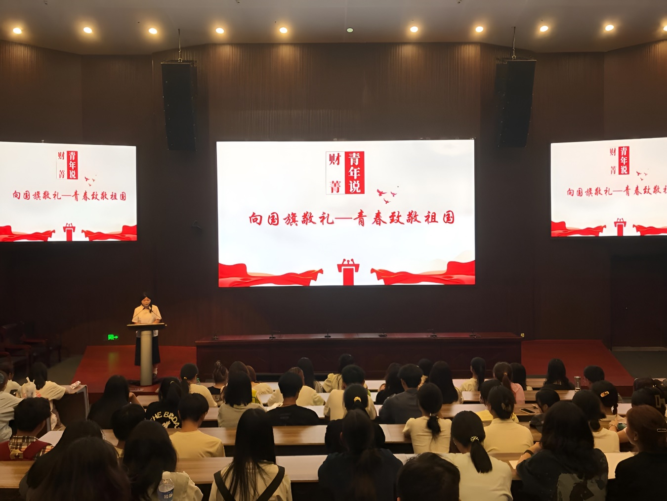 為熱烈慶祝中華人民共和國成立75周年,弘揚愛國主義精神,激勵青年學生勇擔時代使命,9月27日,我校在八里湖校區2號報告廳舉辦了以“向國旗敬禮——青春致敬祖國”為主題的“財菁青年說”活動,吸引了200余名學生現場聆聽。