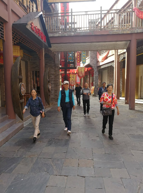 座談會結束后,彭慧親自送老同志們登車出游。一路上,老同志們歡聲笑語,話舊敘新,倍感親切,感受著自然的舒適,暢談著鍛煉的樂趣,分享著退休后美好生活的方方面面。大家游覽了武寧縣桃源谷度假村,參觀了柘林古鎮。活動中,大家結伴成群,時而駐足觀看,時而拍照留念,沉浸在歡樂、文明、和諧的氛圍中,老同志們欣賞了美麗風景,同時也放松了身心。
