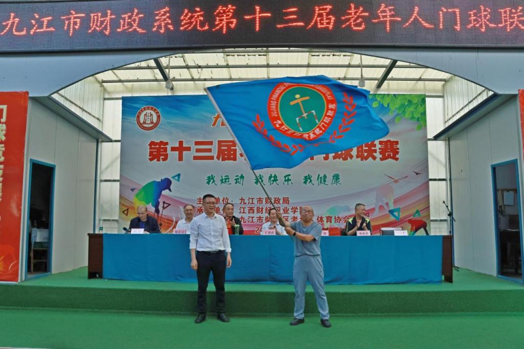 賽事結束后,江西財經職業學院向湖口縣財政局交接下一屆賽事會旗,下一屆門球比賽將在湖口縣財政局舉行。