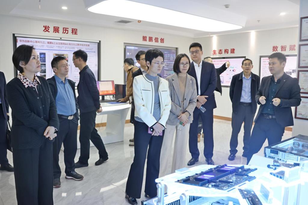 楊文萍一行實(shí)地考察了九江數(shù)字經(jīng)濟(jì)市域產(chǎn)教聯(lián)合體建設(shè)展廳,華為鯤鵬產(chǎn)業(yè)學(xué)院云計(jì)算、融合通訊、人工智能、5G應(yīng)用實(shí)訓(xùn)室,華為新一代信息技術(shù)創(chuàng)新中心等,雙方就鯤鵬產(chǎn)業(yè)學(xué)院建設(shè)和未來(lái)規(guī)劃、特色育人模式及九江數(shù)字經(jīng)濟(jì)產(chǎn)教聯(lián)合體建設(shè)工作等方面進(jìn)行座談交流。