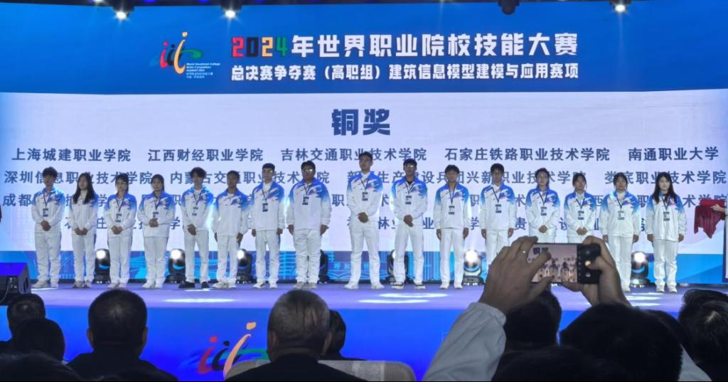 日前,2024年世界職業院校技能大賽總決賽爭奪賽收官,由城鄉建設學院蔡小萍、吳翠翠兩位老師指導,辜聰、陳飛妃、張金丙、袁翔四位同學組成的代表隊,參加了高職組土木建筑賽道(建設工程數字化計量與計價組)賽項,獲得銅獎;由蔡小萍、張樂兩位老師指導,夏秋香、肖子怡、黃子禛三位同學組成的代表隊,參加了高職組土木建筑賽道(建筑信息模型建模與應用)賽項,獲得銅獎。