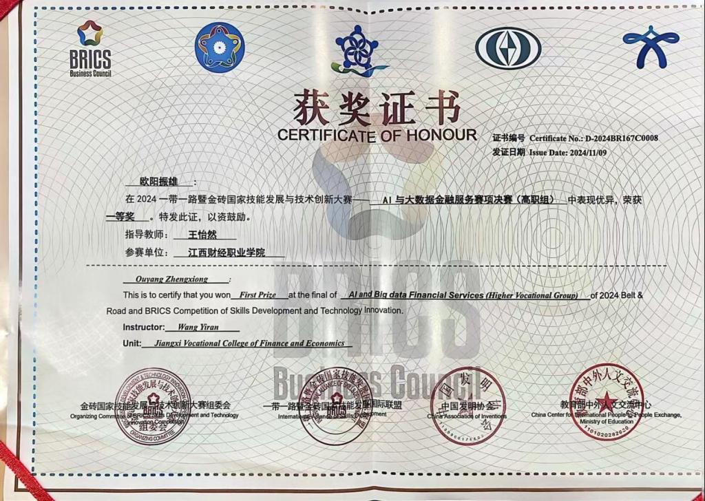 11月9日,2024“一帶一路”暨金磚國家技能發展與技術創新大賽之AI與大數據金融服務賽項國內總決賽在我校舉行。