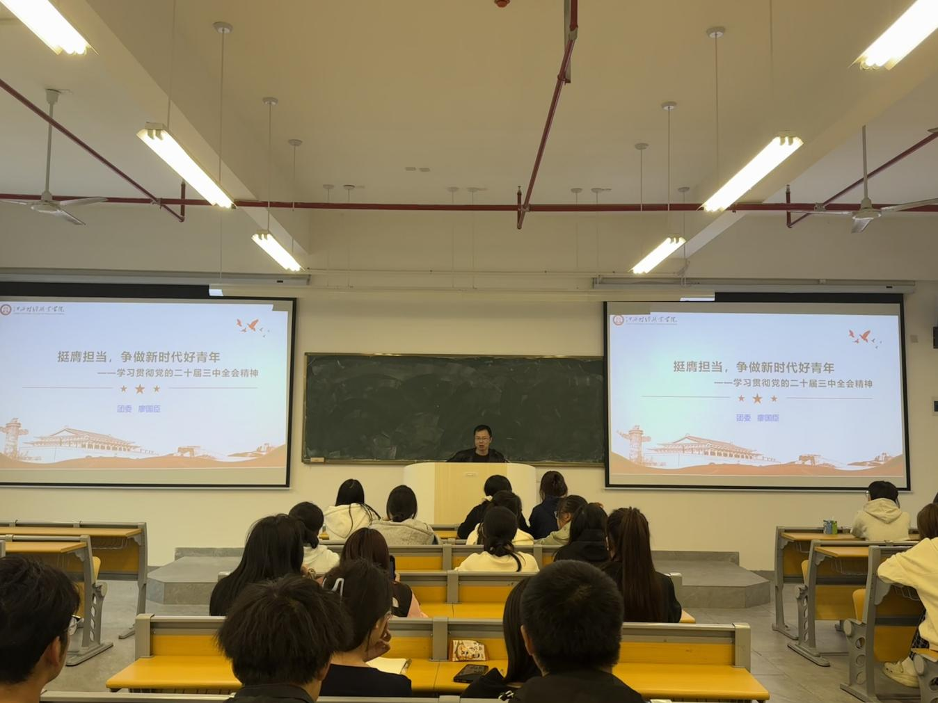 以思想引領(lǐng)教育為主線,開(kāi)展了《挺膺擔(dān)當(dāng),爭(zhēng)做新時(shí)代好青年——學(xué)習(xí)貫徹黨的二十屆三中全會(huì)精神》《自覺(jué)踐行核心價(jià)值觀,努力爭(zhēng)當(dāng)優(yōu)秀大學(xué)生》兩場(chǎng)專題宣講,從“是什么”“為什么”“怎么做”三個(gè)方面,引領(lǐng)新生團(tuán)支書(shū)們筑牢思想根基,堅(jiān)定理想信念,敢于擔(dān)當(dāng)作為,爭(zhēng)做優(yōu)秀表率。