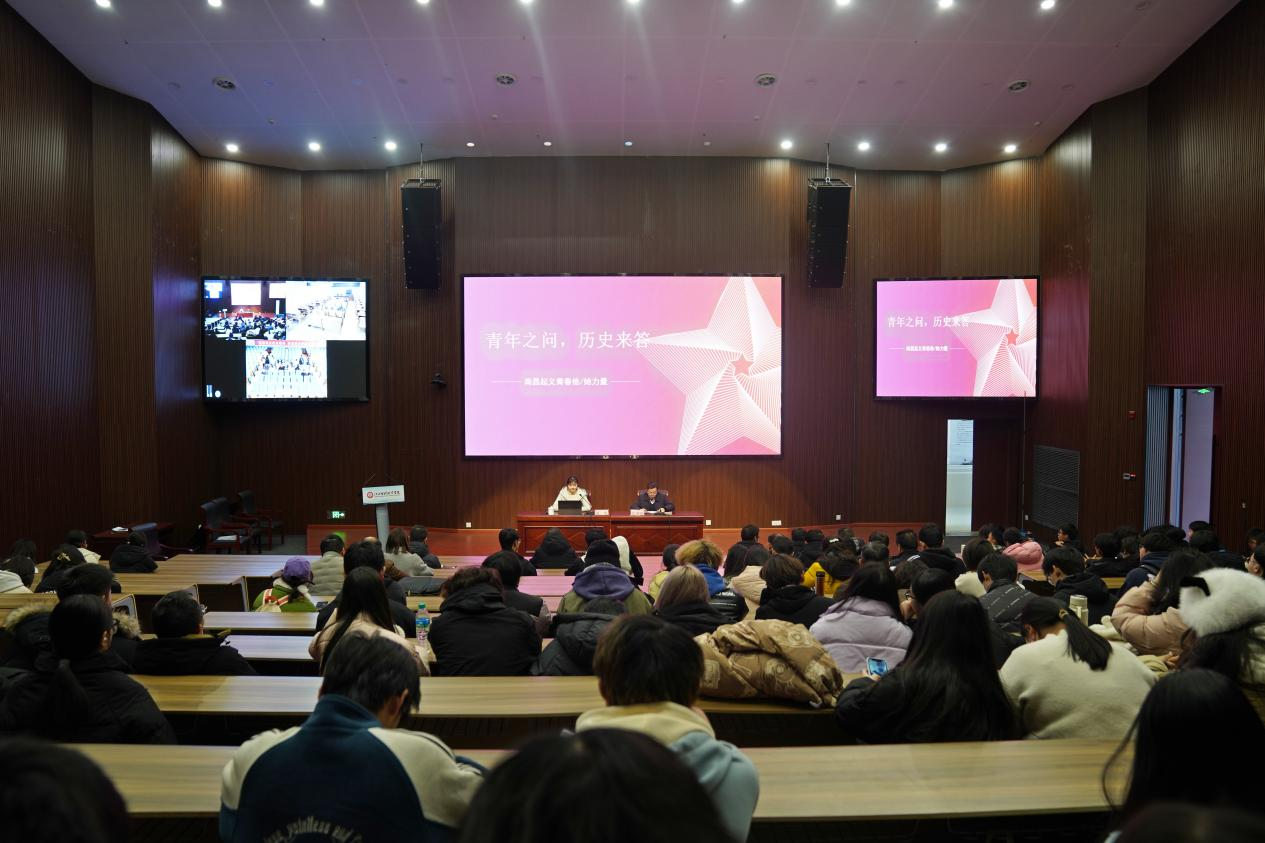 為傳承紅色基因、賡續(xù)紅色血脈,12月16日,學(xué)校在八里湖校區(qū)行政樓二號(hào)報(bào)告廳舉辦了“中國(guó)共產(chǎn)黨人精神譜系”宣講報(bào)告會(huì),特邀全國(guó)高校“中國(guó)共產(chǎn)黨人精神譜系”宣講團(tuán)專家、南昌八一起義紀(jì)念館宣教科科長(zhǎng)周甜作題為“青年之問(wèn),歷史來(lái)答——南昌起義青春他/她力量”的主題宣講。校黨委委員、副校長(zhǎng)邱家明出席并主持,師生代表200余人參加宣講報(bào)告會(huì)。