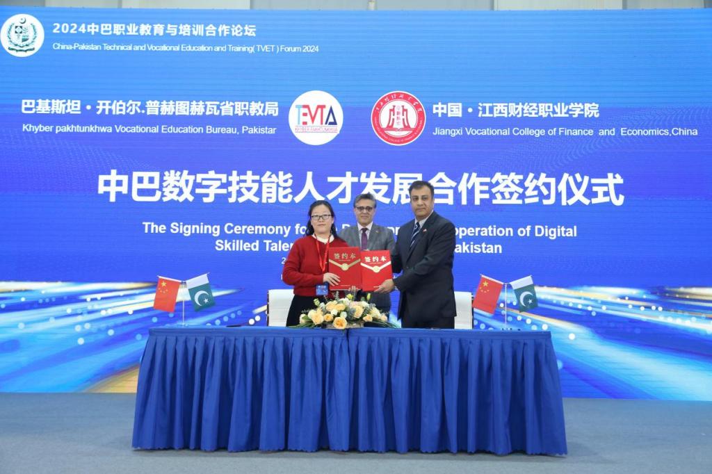 論壇上,我校和開伯爾-普赫圖赫瓦省政府技術教育與職業培訓局簽署項目合作協議,雙方將聚焦金融服務與管理、金融科技應用、會計科技、數字營銷以及信息技術等專業領域,共建數字技術產業學院,打造網絡教學空間,共同建設數字化教學資源,分期開展數字化技能培訓與測試、人員交流與互訪、學歷教育認證等合作。