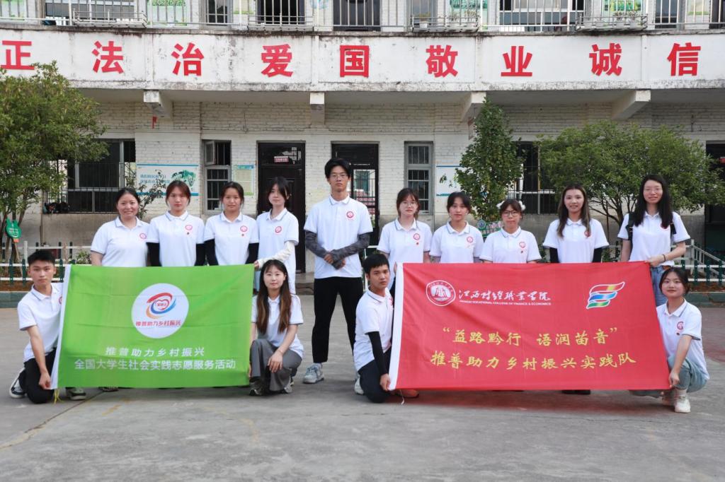 “益路黔行,語潤苗音”推普實踐隊的14名師生于2024年7月10日至19日奔赴貴州省凱里市舟溪鎮開展“推普助力鄉村振興”社會實踐活動。實踐隊通過運用在線課堂、智能語音助手等數字化工具,廣泛推廣國家智慧教育讀書平臺等在線學習資源;結合當地“旅游+”的發展理念,開設短視頻拍攝、剪輯技巧以及抖音平臺運營等實用課程,為鄉村振興注入了新活力;依托江西豐富的紅色教育資源,精心組織了一系列以“典耀中華”為主題的普通話宣講和朗誦活動,促進了語言文化與鄉村、民族特色的深度融合。