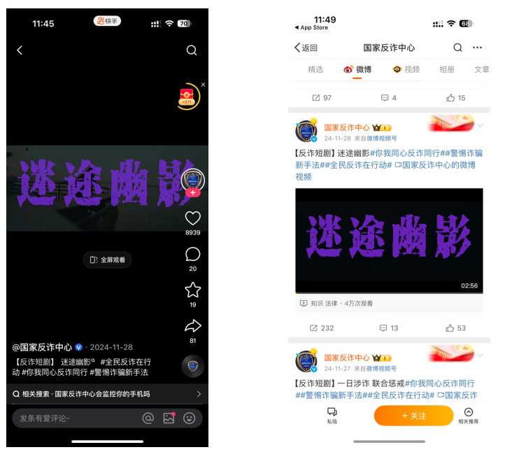 《迷途幽影》由萬鵬老師指導、“ONE影像大師工作室”學生團隊傾力創(chuàng)作完成。作品聚焦網(wǎng)絡詐騙這一社會熱點,充分運用新媒體手段,以引人入勝的劇情、精湛的制作水平,生動揭示了電信詐騙手段,有效提高了公眾的反詐意識。