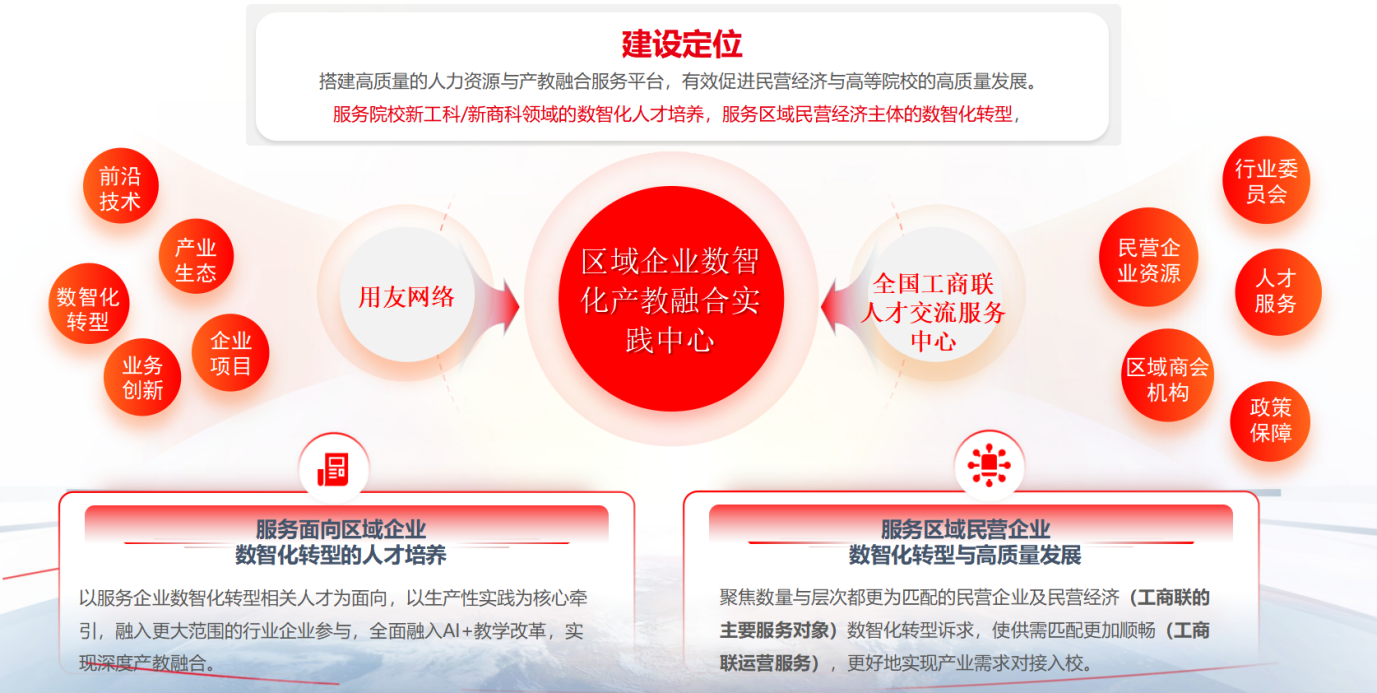 共同體立項多個產學研合作項目,圍繞“智能會計師”人才需求,以“企業數智化協同創新中心”為連接,以“用友BIP數智化工程師產業學院”為載體,以“未來會計實踐中心”為抓手,以“雙師發展中心”為支撐,打造智能會計現場工程師學院;聯合成員單位共建數智商業綜合實踐中心,支持學科專業集群建設,培養具備行業特色的創新型復合人才;與全國工商聯人才交流服務中心共建區域企業數智化產教融合實踐中心,聚力打造集人才培養、科學研究、技術創新、企業服務、學生創業等功能于一體的服務區域民營企業高質量發展的示范性人才培養高地。