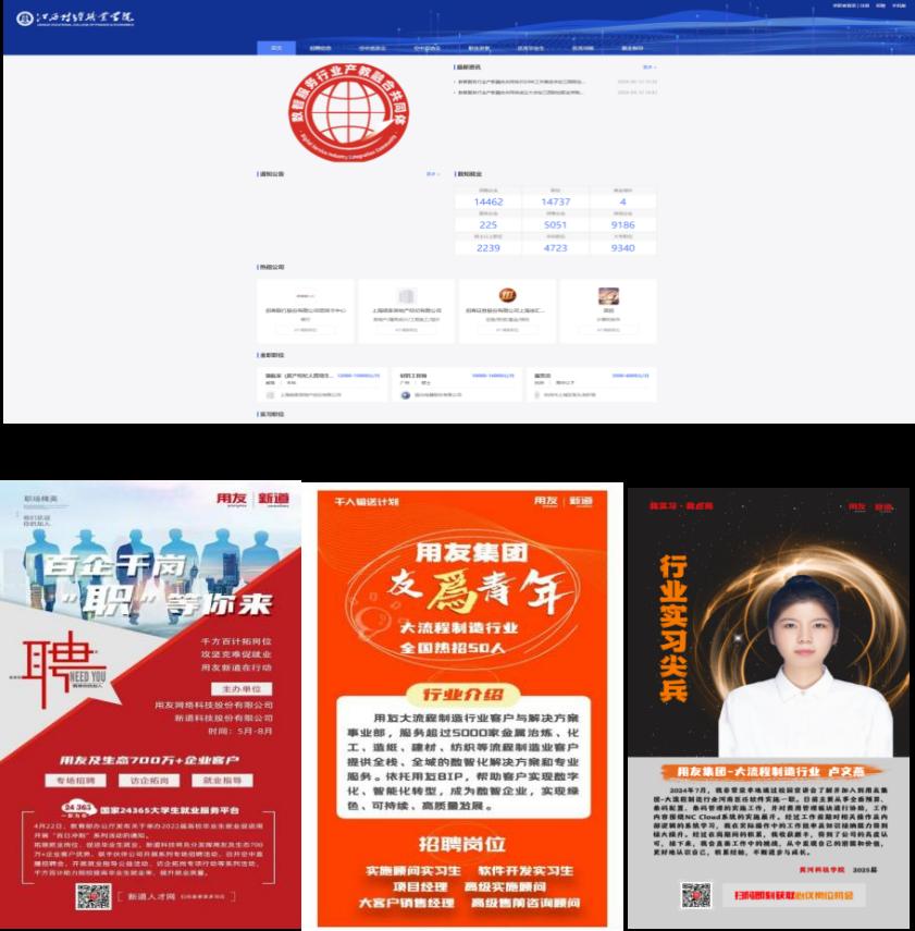 通過搭建新道人才網和江西財經人才網,共同體實現了企業與院校的精準對接,每季度吸引超25家企業在平臺發布招聘信息。同時,啟動用友南昌產業園工程,推出“千人輸送計劃”和“我實習·我點亮”系列活動,促進了數智人才的常態化、平臺化、規模化輸送。