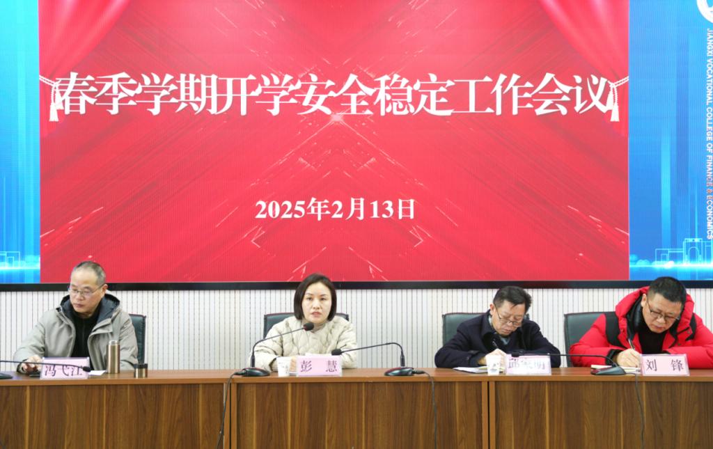 2月13日上午,我校在潯陽(yáng)校區(qū)綜合樓七樓報(bào)告廳召開(kāi)2025年春季開(kāi)學(xué)安全穩(wěn)定工作會(huì)議,會(huì)議由校黨委副書(shū)記、校長(zhǎng)彭慧主持,全體黨委班子成員出席,各二級(jí)學(xué)院、各部門(mén)主要負(fù)責(zé)人參加。