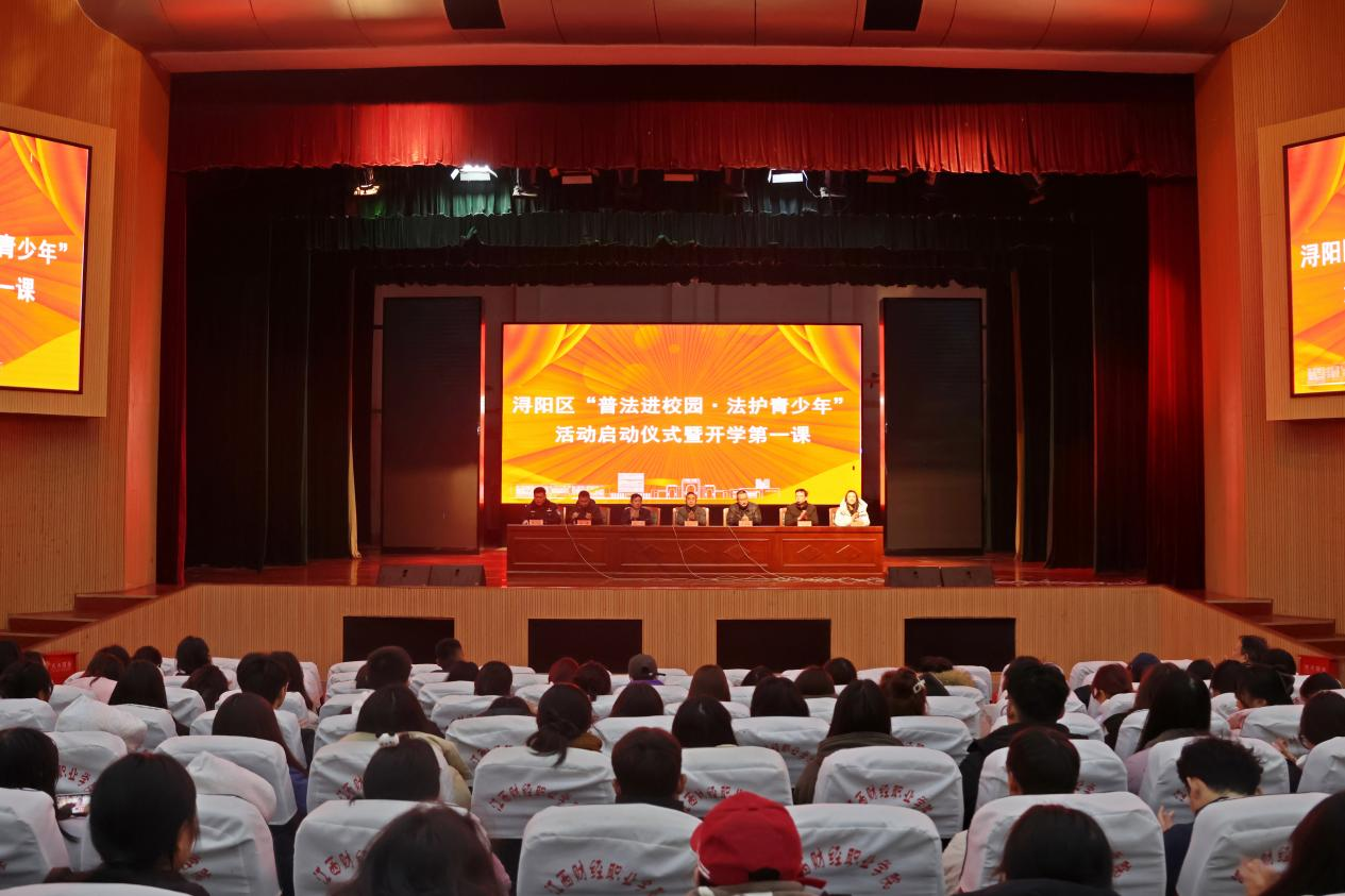 為增強青少年法律意識,提升自我保護能力,營造校園法治氛圍,促進青少年健康成長,2月20日上午,我校在潯陽校區(qū)英才交流中心開展“普法進校園·法護青少年”活動啟動儀式暨開學(xué)第一課。九江市司法局黨組成員、副局長朱歡文,潯陽區(qū)委常委、政法委書記劉國棟,校黨委委員、副校長邱家明及九江市司法局、潯陽區(qū)委政法委、潯陽區(qū)司法局、人民路街道司法所工作人員和我校師生代表參加。