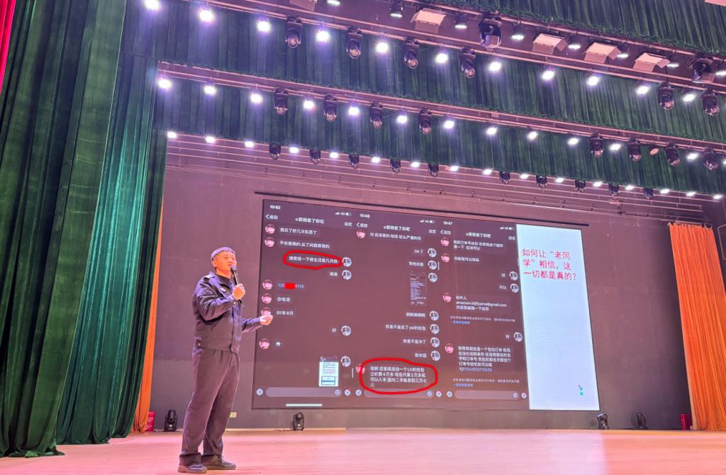 陳警官結(jié)合近年來發(fā)生在校園內(nèi)的典型詐騙案例,深入剖析了詐騙分子的作案手段和特點,提醒師生們在日常生活中提高警惕,防范各類詐騙。