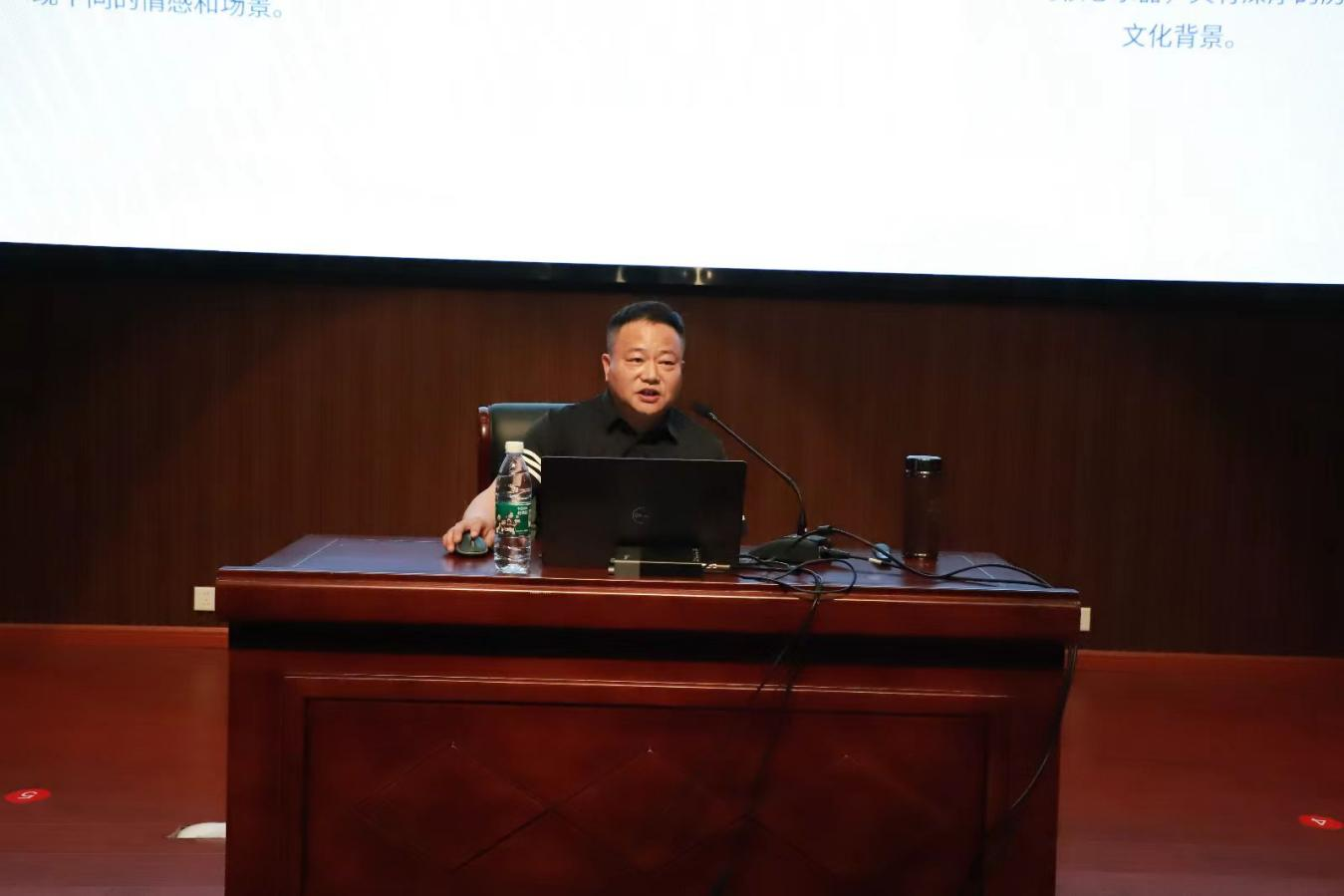 開幕式后,九江市非遺中心和我校聯(lián)合開展了“非遺(戲曲)進(jìn)校園”活動。中國曲藝家協(xié)會會員、都昌鼓書江西省非遺傳承人張云龍老師以“都昌鼓書——傳統(tǒng)藝術(shù)的魅力與傳承”為題,通過理論講解與現(xiàn)場演示相結(jié)合的方式,生動展現(xiàn)了都昌鼓書的藝術(shù)特色和發(fā)展歷程。他不僅系統(tǒng)講解了都昌鼓書的歷史淵源、藝術(shù)特色和表演形式,重點剖析了“說、唱、做、打”四位一體的表演體系,還深情分享了自己數(shù)十年的藝術(shù)感悟。